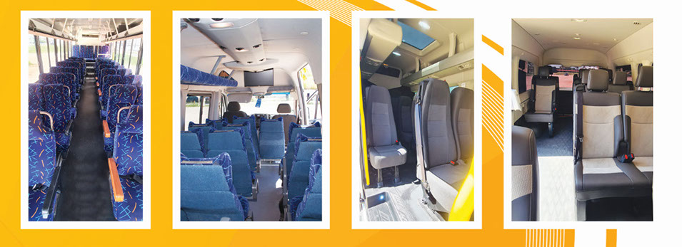 Tenemos unidades con capacidad de 45 asientos, reclinables, forrados en tela, con espacios regulados entre cada uno de ellos, que ofrecen ergonomía, confort y comodidad a los usuarios.